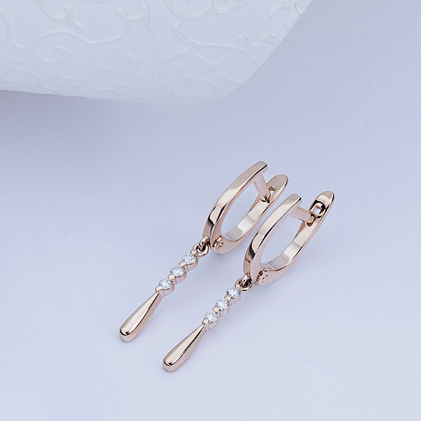 Обеци с диаманти е страхотно допълнение към Вашата колекция бижута. Продава се на цената на производителя (BGN 2,195.00). Бижута с истински якутски диаманти, изработени в завода EPL в Якутск. Червено злато подчертава играта на светлината върху страните на диаманта, устойчив е на влага, подходящ за ежедневно носене. Нашите продукти се продават само в маркови магазини.
