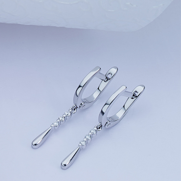 Обеци с диаманти е страхотно допълнение към Вашата колекция бижута. Продава се на цената на производителя (BGN 694.00). Бижута с истински якутски диаманти, изработени в завода EPL в Якутск. Сребро подчертава играта на светлината върху страните на диаманта, устойчив е на влага, подходящ за ежедневно носене. Нашите продукти се продават само в маркови магазини.