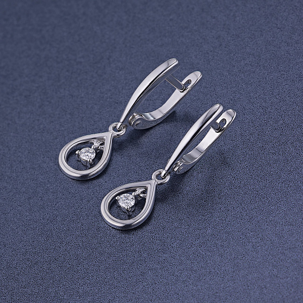 Обеци с диаманти е страхотно допълнение към Вашата колекция бижута. Продава се на цената на производителя (BGN 1,525.00). Бижута с истински якутски диаманти, изработени в завода EPL в Якутск. Сребро подчертава играта на светлината върху страните на диаманта, устойчив е на влага, подходящ за ежедневно носене. Нашите продукти се продават само в маркови магазини.