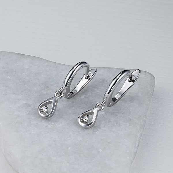 Обеци с диаманти е страхотно допълнение към Вашата колекция бижута. Продава се на цената на производителя (BGN 302.00). Бижута с истински якутски диаманти, изработени в завода EPL в Якутск. Сребро подчертава играта на светлината върху страните на диаманта, устойчив е на влага, подходящ за ежедневно носене. Нашите продукти се продават само в маркови магазини.
