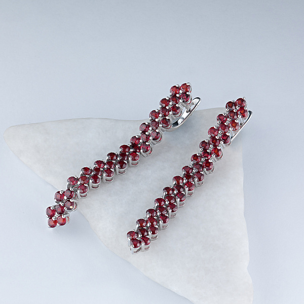 Обеци с гранати е страхотно допълнение към Вашата колекция бижута. Продава се на цената на производителя (BGN 1,568.00). Бижута с истински якутски диаманти, изработени в завода EPL в Якутск. Сребро подчертава играта на светлината върху страните на диаманта, устойчив е на влага, подходящ за ежедневно носене. Нашите продукти се продават само в маркови магазини.