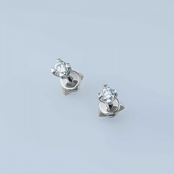 Обеци с диаманти е страхотно допълнение към Вашата колекция бижута. Продава се на цената на производителя (BGN 2,975.00). Бижута с истински якутски диаманти, изработени в завода EPL в Якутск. Бяло злато подчертава играта на светлината върху страните на диаманта, устойчив е на влага, подходящ за ежедневно носене. Нашите продукти се продават само в маркови магазини.