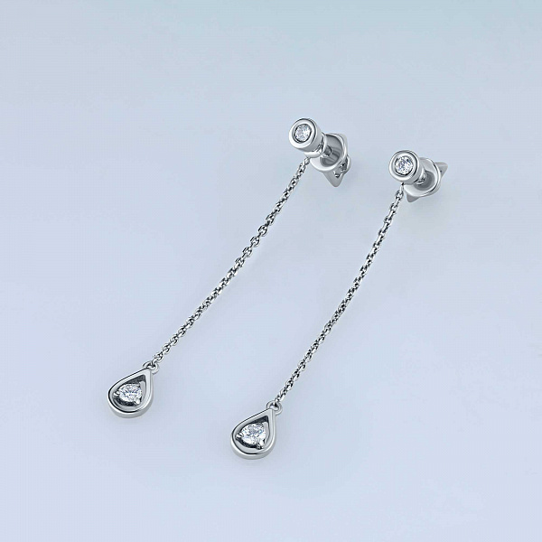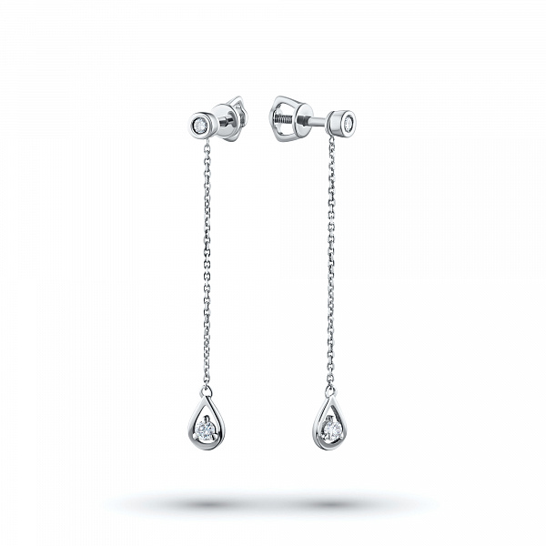 Обеци с диаманти е страхотно допълнение към Вашата колекция бижута. Продава се на цената на производителя (BGN 2,393.00). Бижута с истински якутски диаманти, изработени в завода EPL в Якутск. Бяло злато подчертава играта на светлината върху страните на диаманта, устойчив е на влага, подходящ за ежедневно носене. Нашите продукти се продават само в маркови магазини.