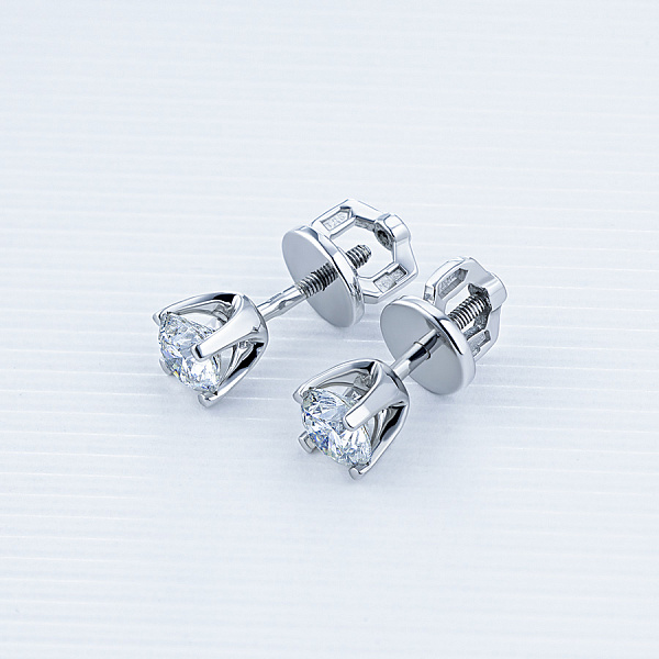 Обеци с диаманти е страхотно допълнение към Вашата колекция бижута. Продава се на цената на производителя (BGN 8,371.00). Бижута с истински якутски диаманти, изработени в завода EPL в Якутск. Бяло злато подчертава играта на светлината върху страните на диаманта, устойчив е на влага, подходящ за ежедневно носене. Нашите продукти се продават само в маркови магазини.