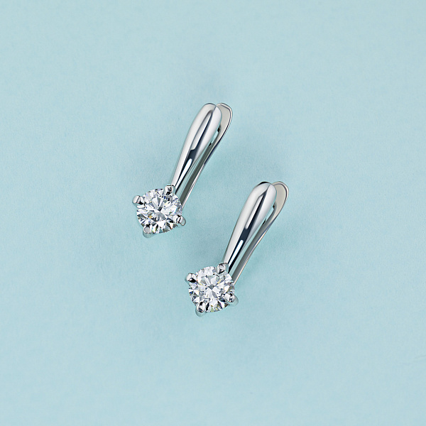 Обеци с диаманти е страхотно допълнение към Вашата колекция бижута. Продава се на цената на производителя (BGN 6,955.00). Бижута с истински якутски диаманти, изработени в завода EPL в Якутск. Бяло злато подчертава играта на светлината върху страните на диаманта, устойчив е на влага, подходящ за ежедневно носене. Нашите продукти се продават само в маркови магазини.