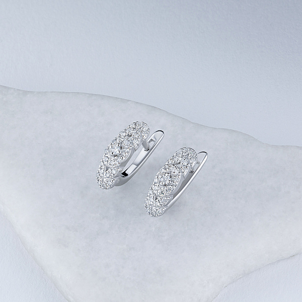 Обеци с диаманти е страхотно допълнение към Вашата колекция бижута. Продава се на цената на производителя (BGN 3,348.00). Бижута с истински якутски диаманти, изработени в завода EPL в Якутск. Бяло злато подчертава играта на светлината върху страните на диаманта, устойчив е на влага, подходящ за ежедневно носене. Нашите продукти се продават само в маркови магазини.