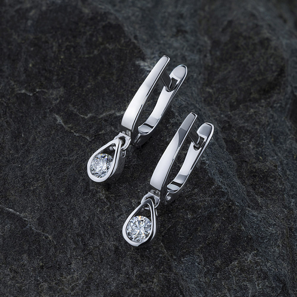 Обеци с диаманти е страхотно допълнение към Вашата колекция бижута. Продава се на цената на производителя (BGN 6,663.00). Бижута с истински якутски диаманти, изработени в завода EPL в Якутск. Бяло злато подчертава играта на светлината върху страните на диаманта, устойчив е на влага, подходящ за ежедневно носене. Нашите продукти се продават само в маркови магазини.