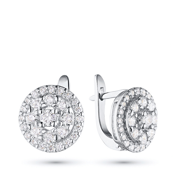 Обеци с диаманти е страхотно допълнение към Вашата колекция бижута. Продава се на цената на производителя (BGN 11,362.00). Бижута с истински якутски диаманти, изработени в завода EPL в Якутск. Бяло злато подчертава играта на светлината върху страните на диаманта, устойчив е на влага, подходящ за ежедневно носене. Нашите продукти се продават само в маркови магазини.