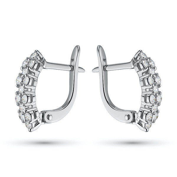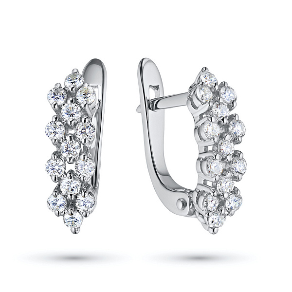 Обеци с диаманти е страхотно допълнение към Вашата колекция бижута. Продава се на цената на производителя (BGN 4,156.00). Бижута с истински якутски диаманти, изработени в завода EPL в Якутск. Бяло злато подчертава играта на светлината върху страните на диаманта, устойчив е на влага, подходящ за ежедневно носене. Нашите продукти се продават само в маркови магазини.