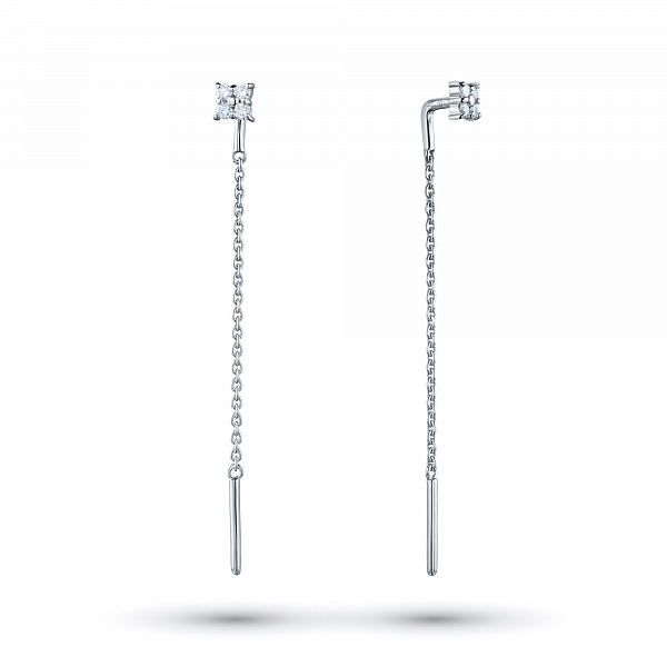 Обеци с диаманти е страхотно допълнение към Вашата колекция бижута. Продава се на цената на производителя (BGN 1,516.00). Бижута с истински якутски диаманти, изработени в завода EPL в Якутск. Бяло злато подчертава играта на светлината върху страните на диаманта, устойчив е на влага, подходящ за ежедневно носене. Нашите продукти се продават само в маркови магазини.