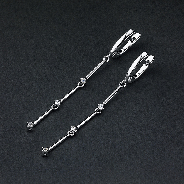 Обеци с диаманти е страхотно допълнение към Вашата колекция бижута. Продава се на цената на производителя (BGN 3,731.00). Бижута с истински якутски диаманти, изработени в завода EPL в Якутск. Бяло злато подчертава играта на светлината върху страните на диаманта, устойчив е на влага, подходящ за ежедневно носене. Нашите продукти се продават само в маркови магазини.