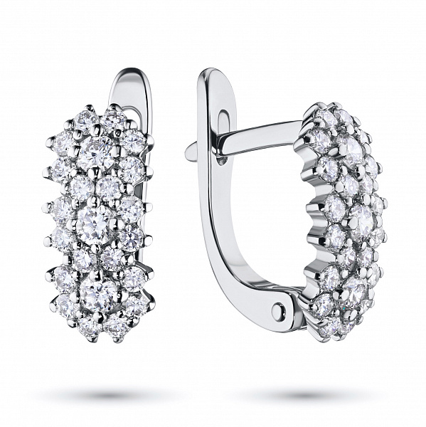 Обеци с диаманти е страхотно допълнение към Вашата колекция бижута. Продава се на цената на производителя (BGN 5,928.00). Бижута с истински якутски диаманти, изработени в завода EPL в Якутск. Бяло злато подчертава играта на светлината върху страните на диаманта, устойчив е на влага, подходящ за ежедневно носене. Нашите продукти се продават само в маркови магазини.