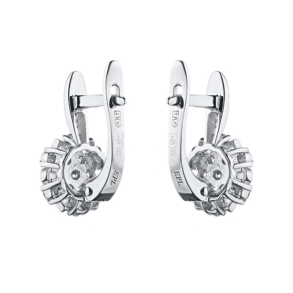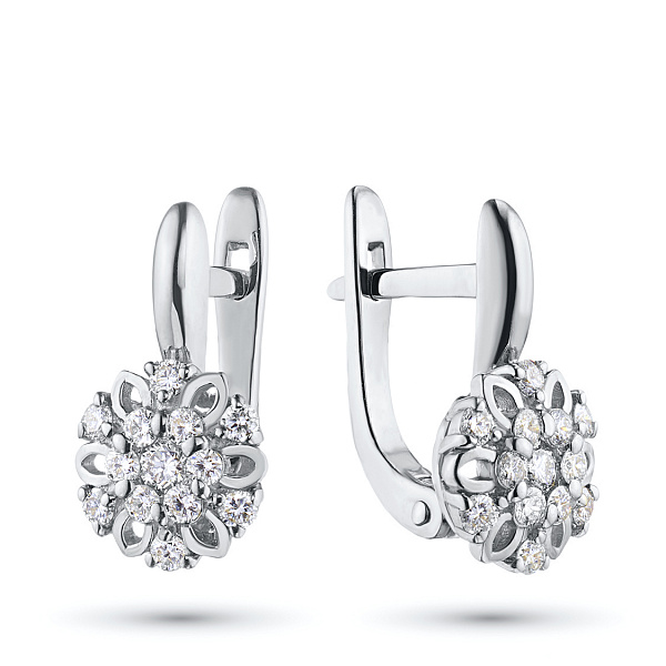 Обеци с диаманти е страхотно допълнение към Вашата колекция бижута. Продава се на цената на производителя (BGN 6,268.00). Бижута с истински якутски диаманти, изработени в завода EPL в Якутск. Бяло злато подчертава играта на светлината върху страните на диаманта, устойчив е на влага, подходящ за ежедневно носене. Нашите продукти се продават само в маркови магазини.