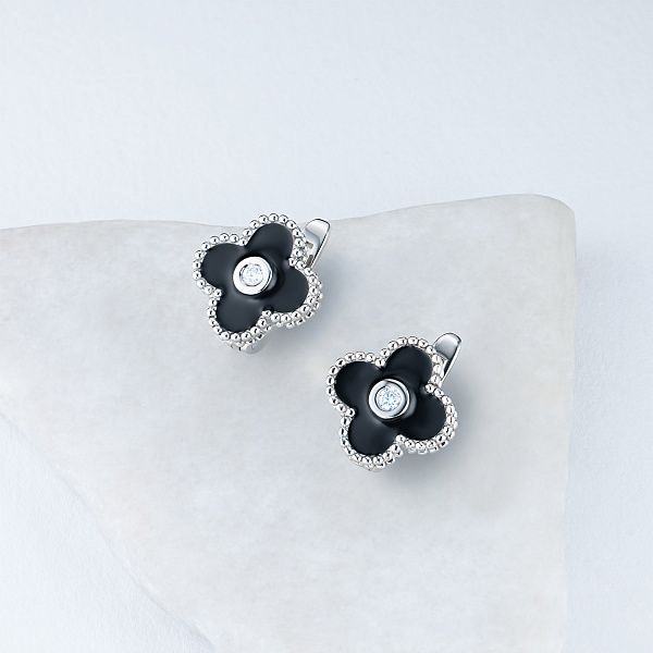 Обеци с диаманти е страхотно допълнение към Вашата колекция бижута. Продава се на цената на производителя (BGN 3,175.00). Бижута с истински якутски диаманти, изработени в завода EPL в Якутск. Бяло злато подчертава играта на светлината върху страните на диаманта, устойчив е на влага, подходящ за ежедневно носене. Нашите продукти се продават само в маркови магазини.