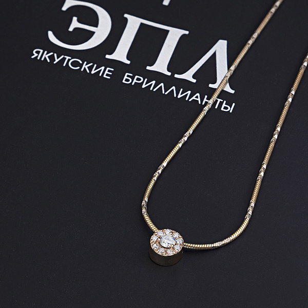 Висулка с диаманти-стилен аксесоар както за тържествен повод, така и за всеки ден. Червено злато изглежда елегантно във всякаква форма, отделно или в комбинация с други бижута.Нашите цени ще Ви изненадат - само BGN 1,725.00 за артикул! Висулката задължително минава сертифициране от съответния орган.Продуктът има сертификационен етикет.В каталога ни может да намерите верижки, гривни и обеци, сходни по дизайн. Всички артикули се продават в черна брандирана опаковка. Диамантите се шлифоват в нашия завод в Якутия.
