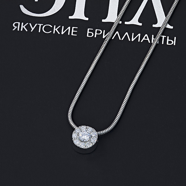 Висулка с диаманти-стилен аксесоар както за тържествен повод, така и за всеки ден. Бяло злато изглежда елегантно във всякаква форма, отделно или в комбинация с други бижута.Нашите цени ще Ви изненадат - само BGN 1,957.00 за артикул! Висулката задължително минава сертифициране от съответния орган.Продуктът има сертификационен етикет.В каталога ни может да намерите верижки, гривни и обеци, сходни по дизайн. Всички артикули се продават в черна брандирана опаковка. Диамантите се шлифоват в нашия завод в Якутия.
