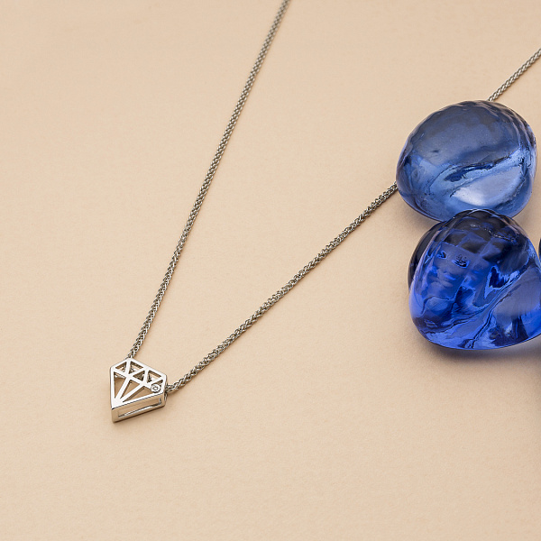 Висулка с диамант-стилен аксесоар както за тържествен повод, така и за всеки ден. Бяло злато изглежда елегантно във всякаква форма, отделно или в комбинация с други бижута.Нашите цени ще Ви изненадат - само BGN 573.00 за артикул! Висулката задължително минава сертифициране от съответния орган.Продуктът има сертификационен етикет.В каталога ни может да намерите верижки, гривни и обеци, сходни по дизайн. Всички артикули се продават в черна брандирана опаковка. Диамантите се шлифоват в нашия завод в Якутия.