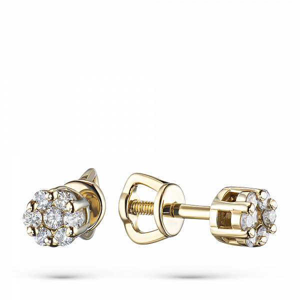 Пусети с диаманти е страхотно допълнение към Вашата колекция бижута. Продава се на цената на производителя (BGN 2,222.00). Бижута с истински якутски диаманти, изработени в завода EPL в Якутск. Жълто злато подчертава играта на светлината върху страните на диаманта, устойчив е на влага, подходящ за ежедневно носене. Нашите продукти се продават само в маркови магазини.