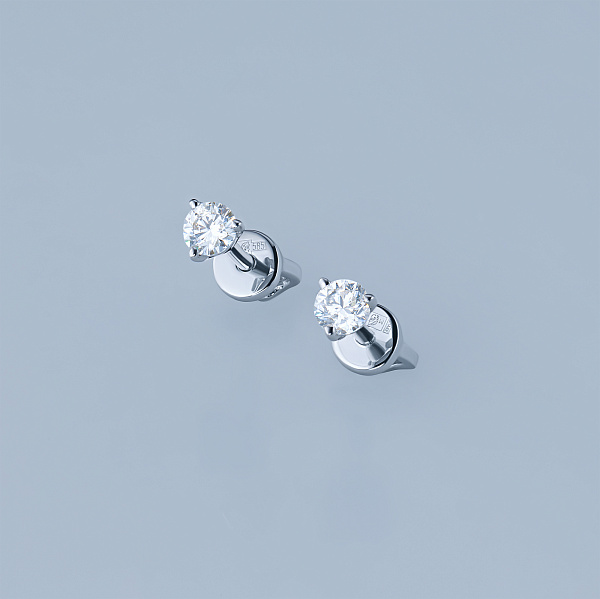Пусети с диаманти е страхотно допълнение към Вашата колекция бижута. Продава се на цената на производителя (BGN 4,175.00). Бижута с истински якутски диаманти, изработени в завода EPL в Якутск. Бяло злато подчертава играта на светлината върху страните на диаманта, устойчив е на влага, подходящ за ежедневно носене. Нашите продукти се продават само в маркови магазини.